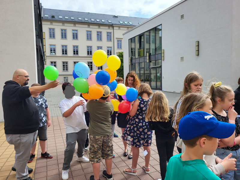Danach ging für die Viertklässler das Feiern mit Popcorn und bunten Luftballons auf dem Schulhof weiter. Wir wünschen euch von Herzen alles Gute für eure weitere Schullaufbahn!