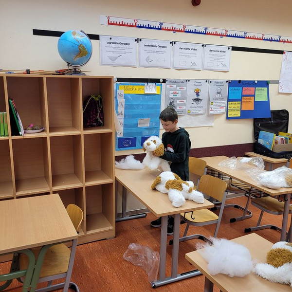 Am 6. Januar trafen sich die Klassensprecher zu einer Bastelstunde. Es durfte sich jedes Kind ein Klassensprechertier ausstopfen und nähen. Ein schlauer Fuchs entstand, einmal war er dünn, einmal dick, aber immer wunderschön.