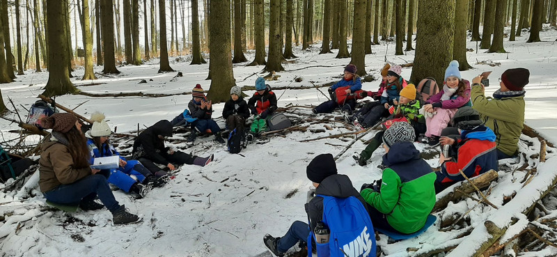 Die Klasse 4a hat in der Woche vom 23.01-27.01.2023 am Waldprojekt teilgenommen. Neben teambildenden Maßnahmen wurden auch wald- und naturpädagogische Aktionen durchgeführt. Unter anderem konnten die Kinder ihr erlerntes Wissen zum Thema Feuer anwenden und mit einem Feuerstahl selber ein Lagerfeuer entzünden.