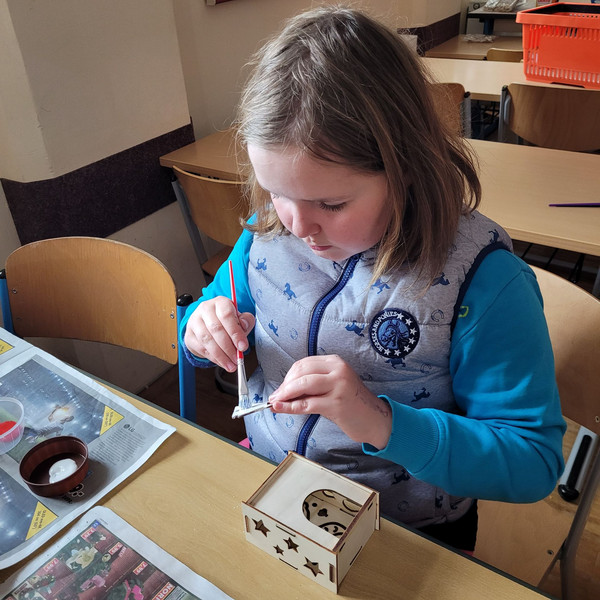Anlässlich des bevorstehenden Osterfestes fand heute ein Projekttag in unserer Schule statt. Die Schülerinnen und Schüler hatten die Möglichkeit, sich eine der angebotenen Stationen auszusuchen. Unter der Anleitung unserer Lehrkräfte entstanden so einige kleine Kunstwerke. In Form von Gebackenem, Gemaltem und Gefilztem, ließen die Kinder ihrer Kreativität freien Lauf. Sportliche Aktivitäten in Form von Street Racket, die Suche nach Lösungen im Escape-Room, Pflanzaktionen der Schulgartenfreunde, die Erstellung eines Podcasts, ein Besuch im Bergwerk, Bauen eines Hindernisparcours für die BeeBot und künstlerische Arbeiten zum Baum, all dies weckte regen Zuspruch bei den Kindern.