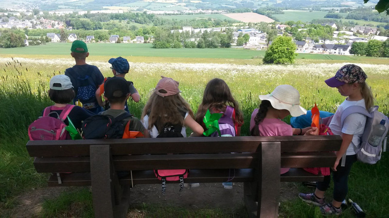 Bei idealem Wanderwetter erkundeten die ersten Klassen das Gebiet um den Pöhlberg. Wir liefen parallel zum Radweg bis zu dem neu gestalteten Picknickplatz und alle Kinder sammelten bunte Herbstblätter und Herbstfrüchte für den Sachunterricht. Nach einer ausgiebigen Stärkung ging es wieder zurück über den Flößgraben Richtung Schule. Dort haben wir dann die Blätter gepresst und die Herbstfrüchte sortiert.