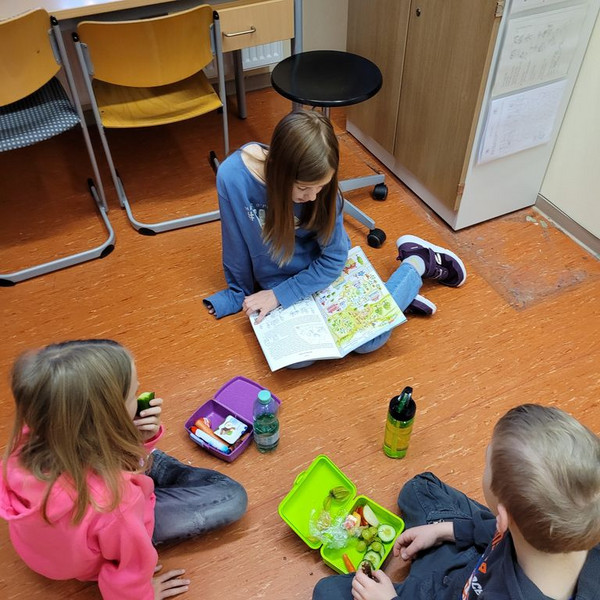 Unsere Schule hat sich dieses Jahr auch wieder am bundesweiten Vorlesetag beteiligt. Dazu sind einige Viertklässler in die Vorschule und haben unseren zukünftigen Erstklässlern von der Raupe Nimmersatt vorgelesen.