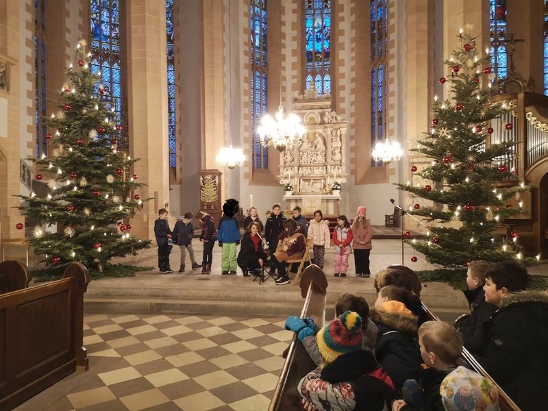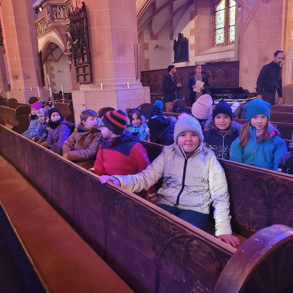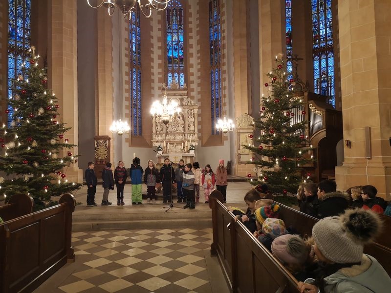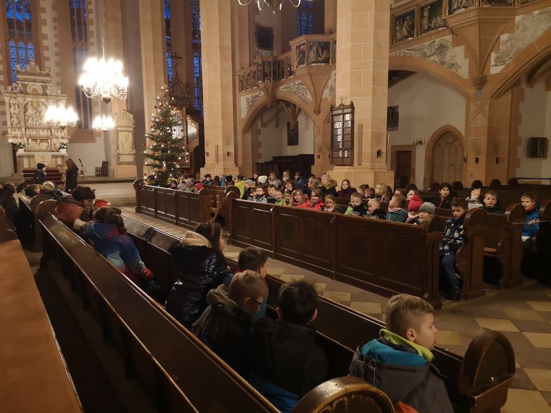 Beim Besuch der St.Annenkirche und dem Singen von Weihnachtsliedern verbrachten die Grundschüler einen besinnlichen letzten Schultag vor den Weihnachtsferien. In Vorfreude auf das kommende Fest war es sehr vergnüglich, den Klang der Orgel zu hören und dass einige Grundschüler auf der Flöte bzw. der Gitarre spielten und ein Weihnachtsgedicht aufgesagt wurde.