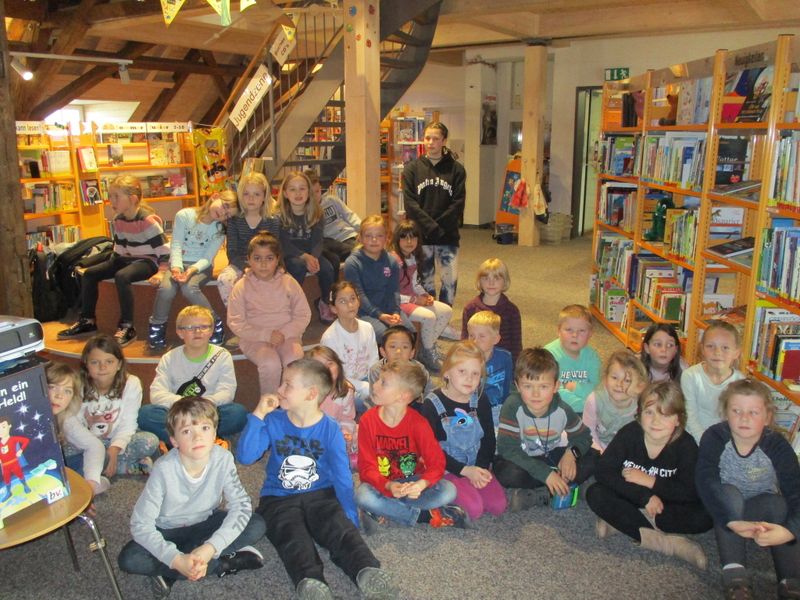 Und schon traditionell kommen die Neuntklässler der Oberschule zu uns in die Grundschule. Mit etwas Lampenfieber haben sie den Kindern ausgewählte Bücher vorgestellt, darüber gesprochen und Bilder malen lassen.
