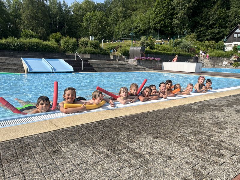 Zum diesjährigen Schwimmbadtag wanderten wir gemeinsam ins Buchholzer Freibad. Nach einer kleinen Stärkung ging es zur Abkühlung ins Wasser oder an die mitgebrachten Spiel- und Sportgeräte. Auch wenn die Erstklässler nur ins kleine Becken durften, wurde getaucht und geplanscht was das Zeug hält. Müde vom Toben sind wir mit dem Bus wieder zur Schule zurückgefahren.