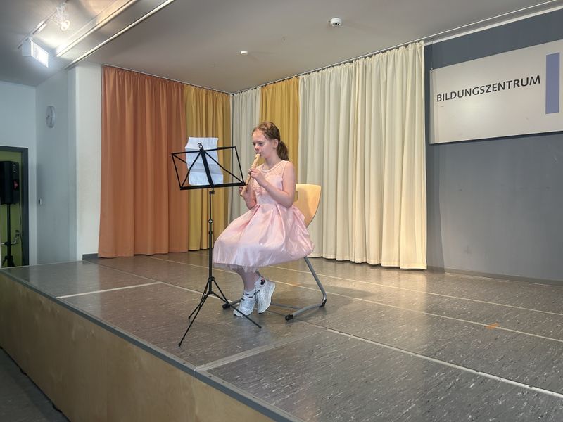 Beim gemeinsamen Weihnachtsprogramm der Grund- und Oberschule stimmten sich alle auf das kommende Weihnachtsfest ein. Wer zeitig genug kam, konnte sich auch einen Sitzplatz sichern. Die Schüler unseres Bildungszentrums sangen Lieder, sagten Gedichte auf, spielten auf ihren Instrumenten und boten Sketche dar. Außerdem gab es im Eingangsbereich weihnachtliche Getränke und Speisen zu erwerben.