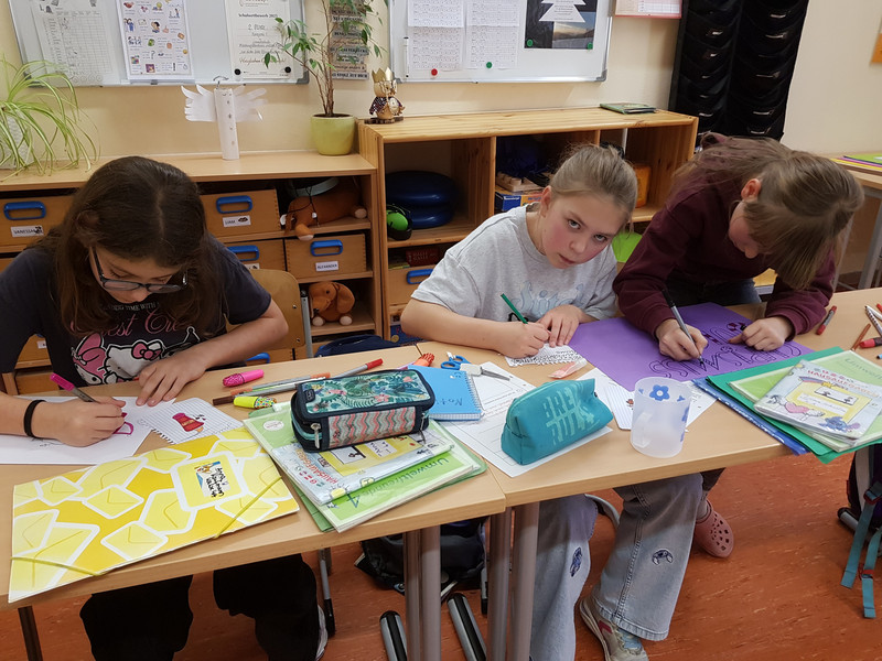 Nach dem Lesen wurden noch Rätsel gelöst, Bilder gemalt und über die Geschichten gesprochen. Die Oberschüler und die vorlesenden Viertklässler waren gut vorbereitet und haben bestimmt bei einigen Kinder das Lesefieber entfacht.