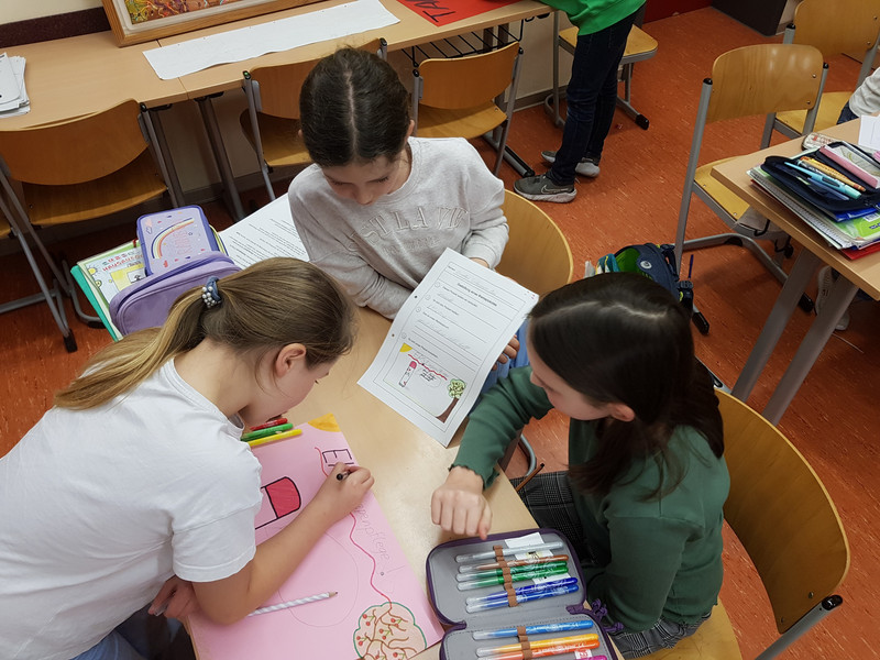 Dazu wurde im Matheunterricht die gerechte Verteilung der Farben der Smarties untersucht. Anschließend durften diese auch vernascht werden. Im Englischunterricht gabe es eine Lesson zu den Farben und einen Hörtext. Innere Organe des menschlichen Körpers schauten sich die Viertklässler im Biologieunterricht an. Außerdem untersuchten wir eine Vogelfeder mit einer Lupe und erfuhren, dass Vögel ihre Federn teilweise selbst reparieren können. Spannend war es auch, unser Sonnensystem und die Milchstraße im Fach Physik genauer anzuschauen.
