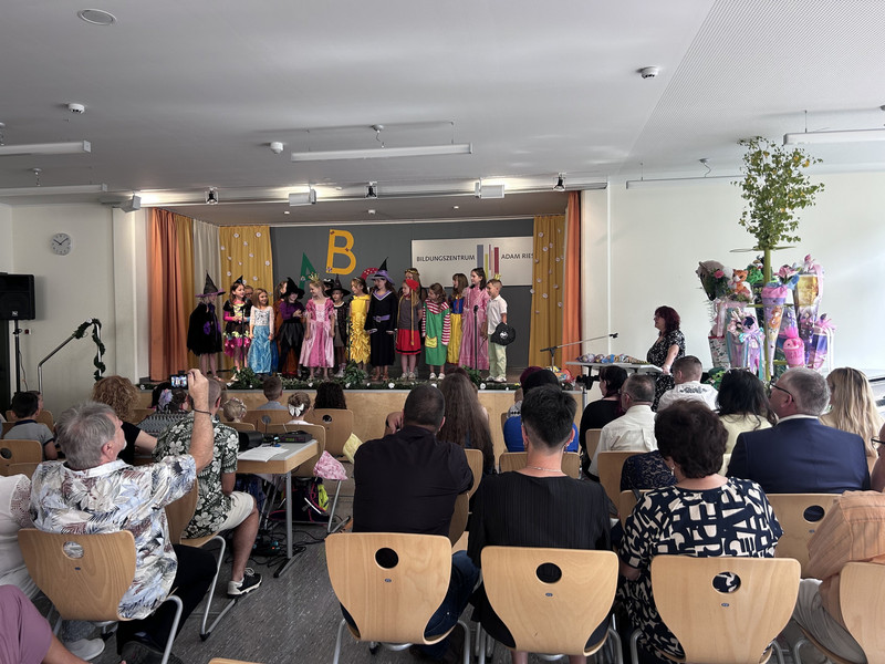 Eine märchenhafte Schulaufnahmefeier erlebten unsere neuen Erstklässler. Mit vielen „zauberhaften“ Kostümen ausgestattet, begrüßten Frau Lindenborn, unsere Schulleiterin und unser Chor die Kinder mit ihren Familien. Mit großer Spannung wurde auch die Übergabe der Zuckertüten erwartet. Dann war es soweit. Eltern oder größere Geschwister übergaben die liebevoll vorbereiteten Schultüten.