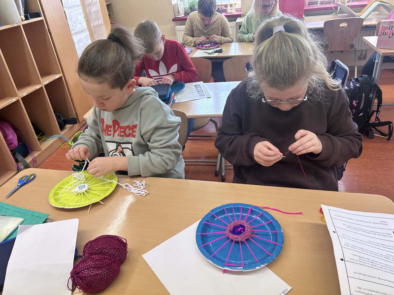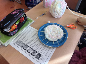 Am Anfang war das Weben am Pappteller zwar etwas knifflig, aber dann bereitete es den Kindern viel Spaß.