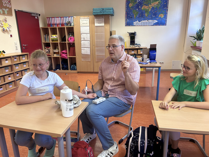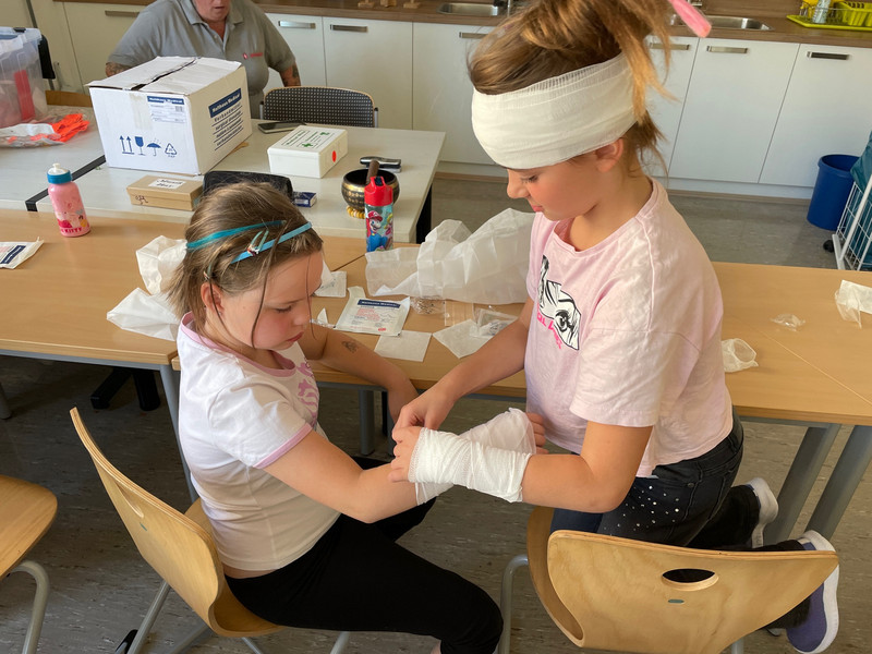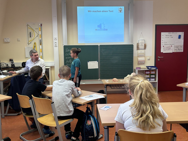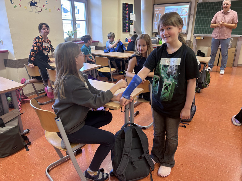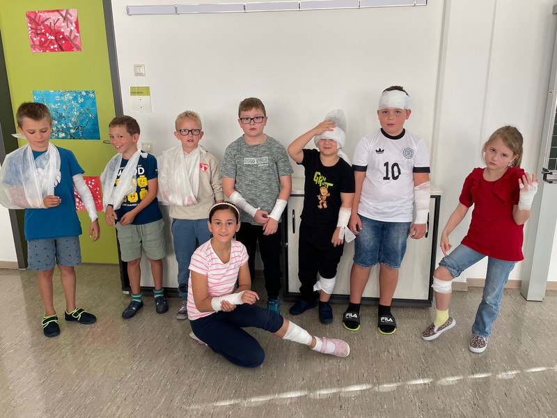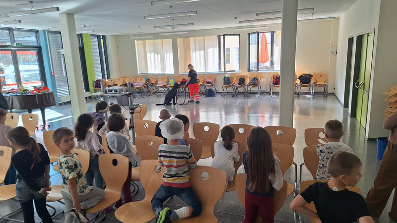 Um die Schüler dafür zu sensibilisieren, fand unser heutiges Projekt statt. Es herrschte reges Treiben im Schulhaus. Mehrere Ärzte waren zu Gast und informierten über wichtige Körperfunktionen, wie z.B. das Herz-Kreislaufsystem oder das Hören. Es wurden auch Verbände angelegt und Wunden versorgt. Die Bürgerpolizei klärte über ihre Aufgaben auf und zeigte ihre speziellen Ausrüstungsgegenstände, wie Helm oder Sicherheitsweste. Die Feuerwehr informierte die Kinder darüber, wie ein Einsatzfahrzeug ausgerüstet ist. Außerdem waren auch Rettungshunde da und zeigten ihr Können.