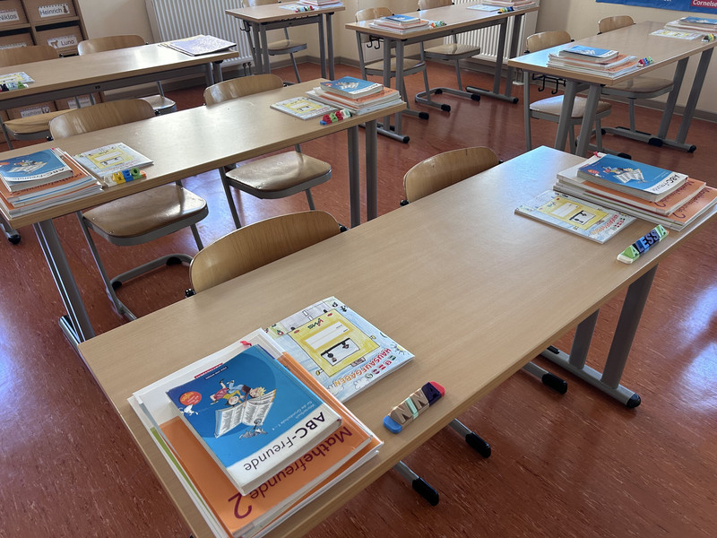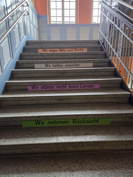 In den Ferien wurde in unserer Schule fleißig geputzt und auch die Treppen erhielten neue Kleber. Die Lehrbücher sind da, die Klassenzimmer sind sauber und warten auf die Lehrerinnen, Erzieherinnen und Kinder.