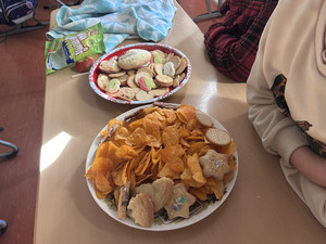 Die Kinder der Klasse 4b durften zur Weihnachtsfeier die neu eingerichtete Küche in unserer Grundschule testen und ausprobieren.Gemeinsam mit einigen Muttis wurden leckere Plätzchen gebacken und später im Klassenzimmer dekoriert. Außerdem vesperten wir gemeinsam nach ein paar Ratespielen und Tänzen. Ein kleines Geschenk vom Weihnachtsmann durfte natürlich auch nicht fehlen.