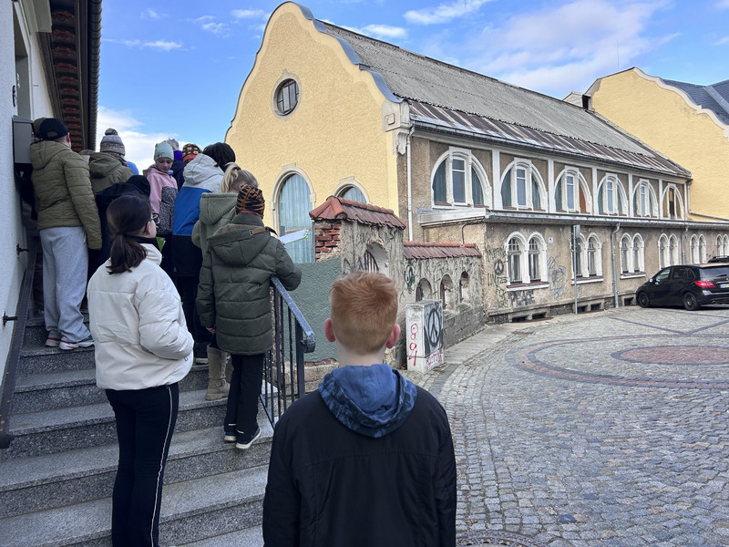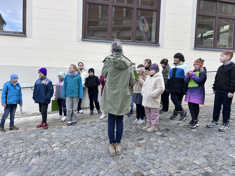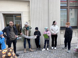 Bei der besonderen Stadtführung zum Thema Judentum in Annaberg-Buchholz wurden die Viertklässler etwa 100Jahre in die Vergangenheit zurückversetzt. Sie erfuhren, wie jüdische Bewohner Annabergs wirkten und arbeiteten. Dabei wurde auch die Posamentenherstellung nochmals genauer betrachtet und sie bekamen alte Quasten und Borden in die Hand.