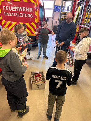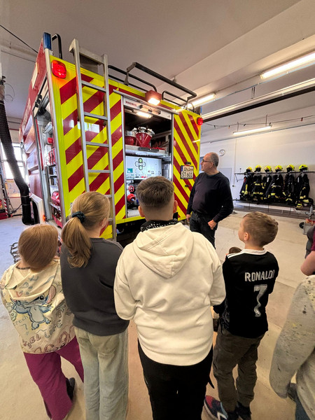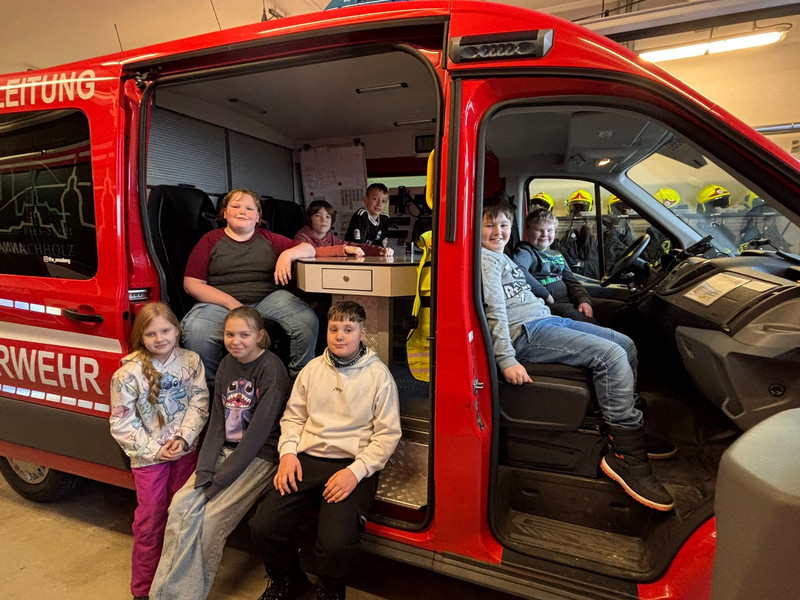 Zum Waldprojekt der Kl.4a und dem Thema "Feuer" stattete eine Gruppe der Freiwilligen Feuerwehr einen Besuch ab. Die Kinder erfuhren viel Interessantes über die Arbeit der Feuerwehr und durften sich auch die Gerätschaften vor Ort genauer anschauen. Die Viertklässler fanden es ziemlich beeindruckend.