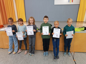 Alle platzierten Kinder freuen sich auf die Siegerehrung zum nächsten Aulatreff.