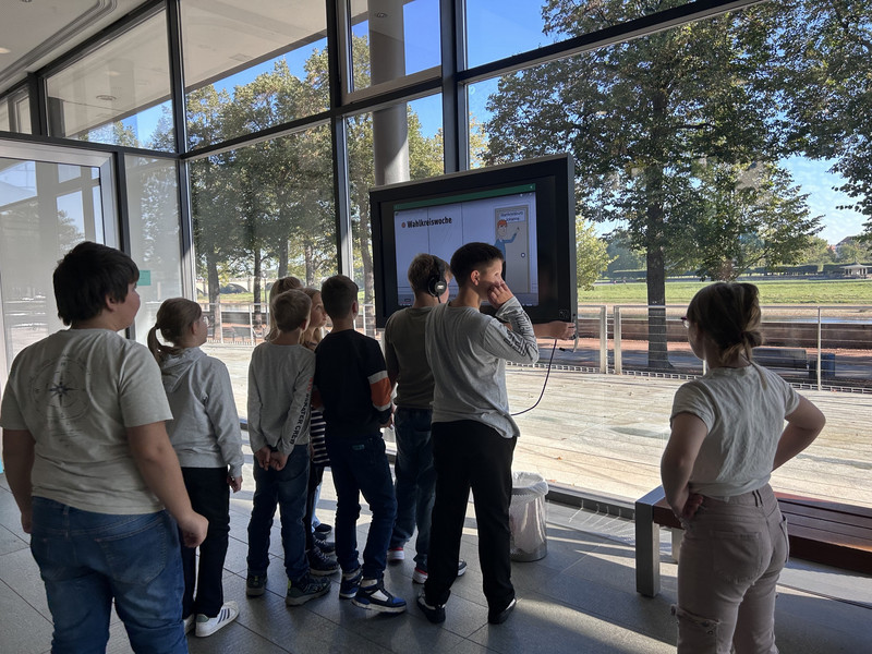 Im Sachunterricht spielt bald das Thema Sachsen eine wichtige Rolle. Um unsere Landeshauptstadt näher kennenzulernen, fuhren die Klassen 4a und 4b gemeinsam nach Dresden. Zuerst bekamen wir eine Führung im Landtag. Dort erfuhren wir, wie die Abgeordneten arbeiten und durften auch bei einer Sitzung im Plenarsaal dabei sein. Im Anschluss schauten wir uns die Altstadt von Dresden an und besuchten danach den Dresdner Zoo. Mit vielen Eindrücken an diesem Tag fuhren wir mit dem Bus wieder nach Annaberg.