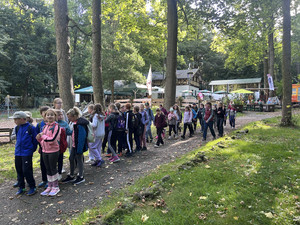 Zauberhaft ging es auch am Freitag weiter. Trotz herbstlicher Temperaturen machten sich die Klassen 1a und 1b gemeinsam zum Pöhlberg auf und wanderten den Märchenweg. Dort gab es 10 verschiedene Märchenkästen zu entdecken. Die beiden Klassen konnten alle Rätsel lösen und dürfen sich jetzt Märchenexpertinnen und -experten nennen.