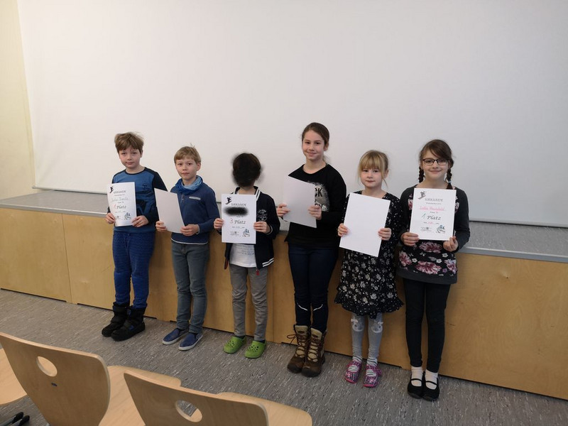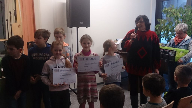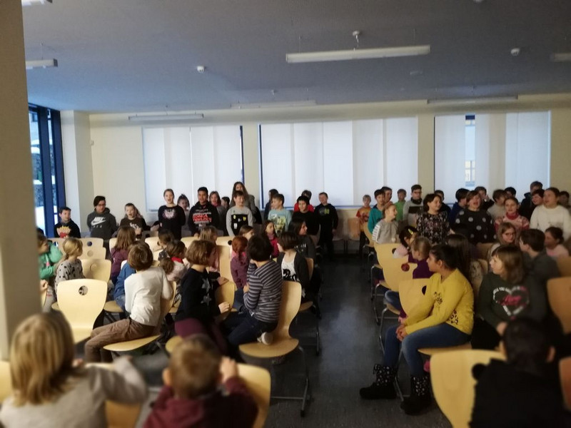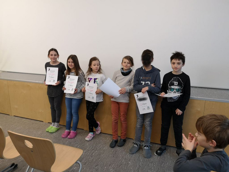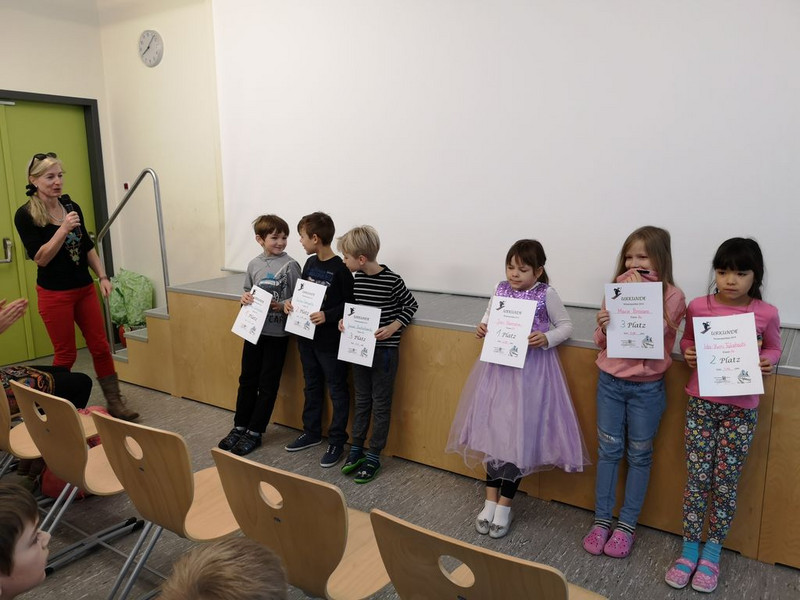 Die Klasse 2b gestaltete den 1.Aulatreff im neuen Jahr. Es wurde gesungen, getanzt, artistische Übungen wurden gezeigt und zum Schluss fand die Auswertung des Informatikwettbewerbs statt. An diese anspruchsvollen Aufgaben wagten sich einige Viertklässler. Die 3 Besten erhielten eine Urkunde und alle weiteren Teilnehmer ein kleines Dankeschön fürs Mitmachen.