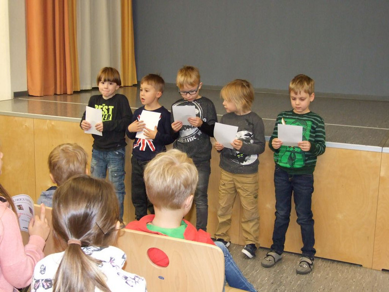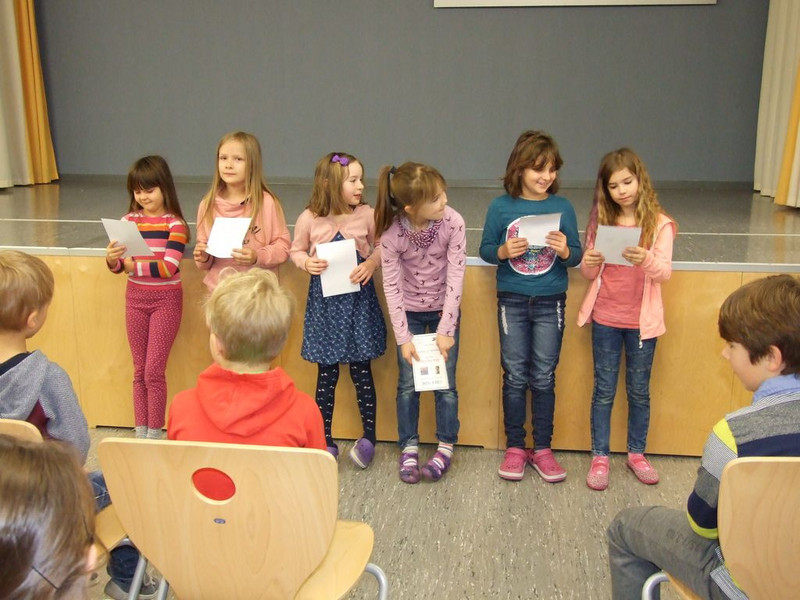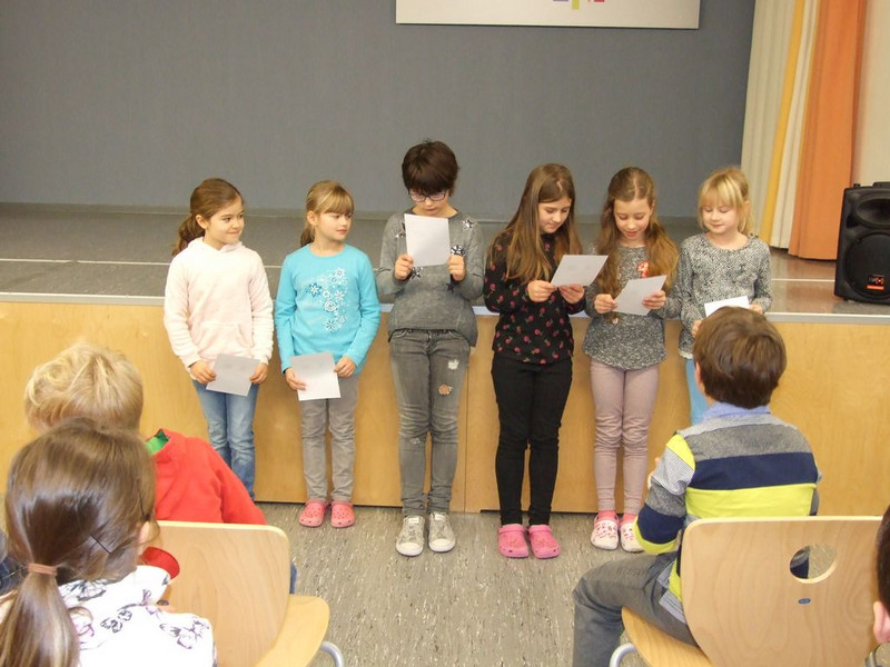 Hanna K. hat noch ein Gedicht vorbereitet und Klasse 4a und b hören wir zum Abschluss mit dem Lied „Guten Abend, schön Abend“.
