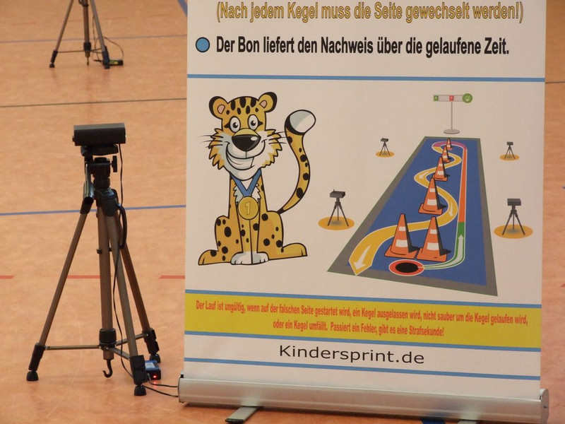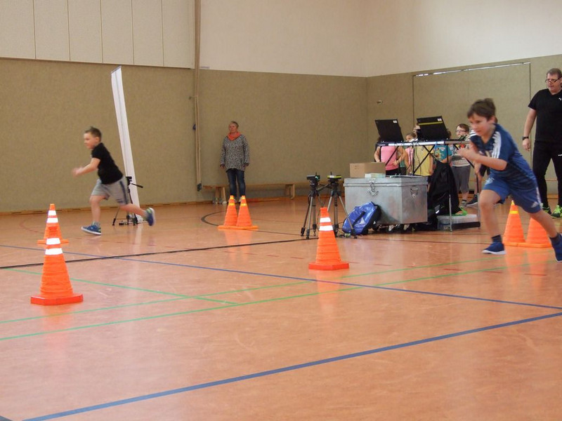 Am 30.01. fand in unserer Turnhalle der Projekttag Kindersprint statt. Alle Schüler durften den aufgebauten Laufparcours mehrmals absolvieren und dabei spielerisch ihre Schnelligkeit, ihr Reaktions- und Koordinationsvermögen testen. Die aufgebaute Technik ermöglichte es den Kindern, sich an der eigenen Leistung zu messen und auf die Hundertstelsekunde genau die erreichten Laufzeiten zu vergleichen.