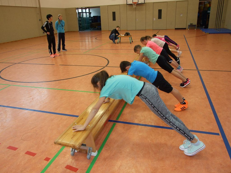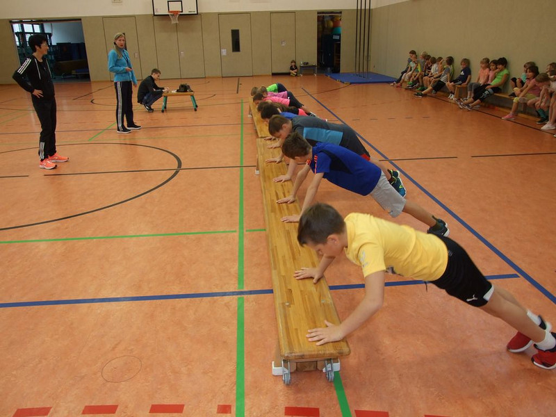 Zu unserer Schulmeisterschaft Athletik am 20.11. waren wieder die "stärksten" Schüler aller Klassen in die Turnhalle eingeladen. In den Disziplinen Klettern, Hockwende, Klimmzüge, Seilsprünge, Liegestütze und Schlussweitsprung gaben alle ihr Bestes und einige "knackten" sogar ihre persönlichen Bestwerte.