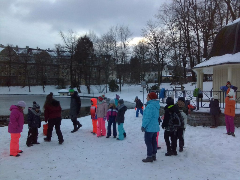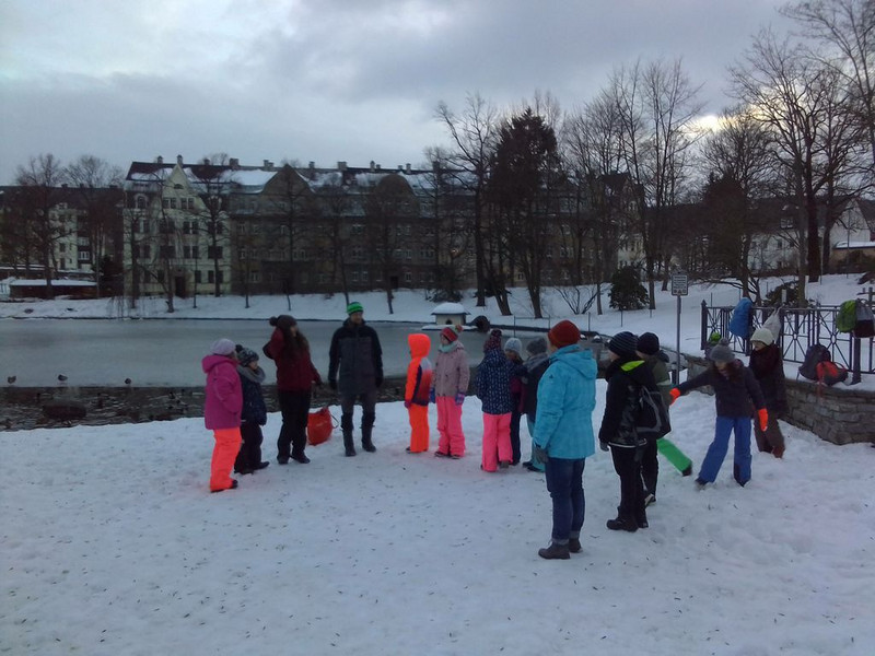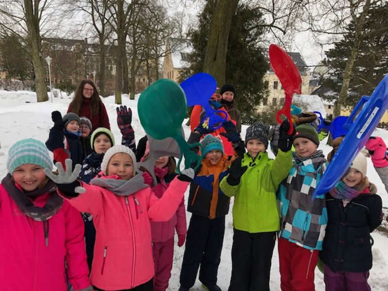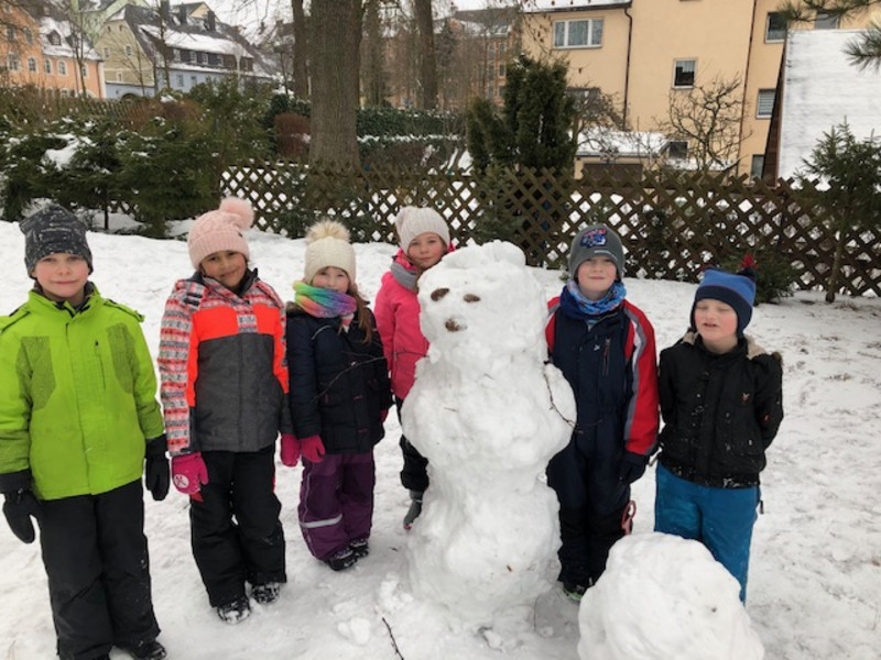 Die Klasse 4a von Frau Seidenglanz nutzte zum letzten Mal das kalte, aber schneereiche Winterwetter aus, um am Flößgraben als Klasse Skifahren zu gehen. Die Kinder, die nicht mitfahren konnten, versuchten aus dem gefrorenen Schnee einen Schneemann zu formen. So entstand der Schneemann „Willi“, der vielleicht auch anderen Kindern zuschaut, wie toll sie mit den Skiern umgehen können.