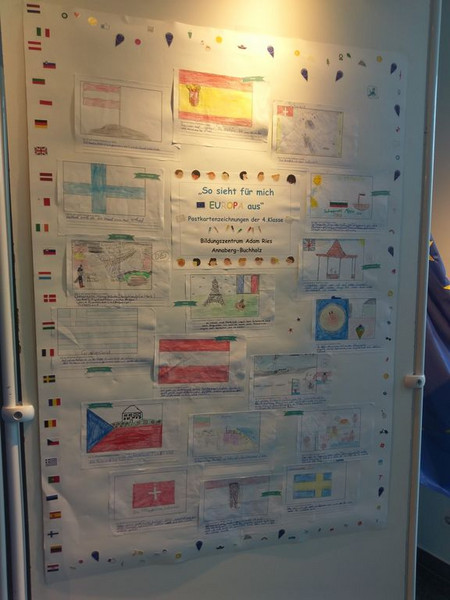 Die Klasse 4a des Bildungszentrums Adam-Ries durfte am 17.08. und 22.08.2018 die Leiterin von Europe Direct Informationszentrum Erzgebirge Frau Einhorn recht herzlich willkommen heißen. Frau Einhorn veranstaltet an verschiedenen Schulen Projekttage, um den Kindern und Jugendlichen ein besseres Verständnis zum komplexen Thema Europa altersgerecht zu vermitteln. Hierzu gehören zum Beispiel die Ländernamen, Flaggen, Sprachen, die verschiedenen Kulturen und ihre Gemeinsamkeiten, Geschichte (Wie entstand Europa?), politische Organe Europas etc. .