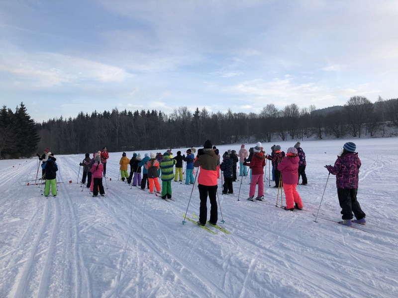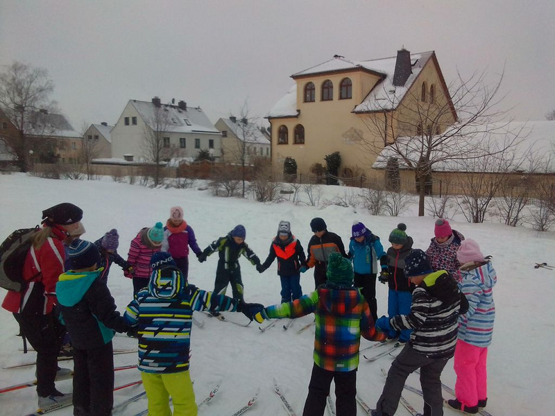 Dieses Jahr war es für mehrere Klassen das erste Mal, dass sie auf Skier im Sportunterricht standen. Und das war doch erstmal ziemlich ungewohnt. Die Kinder lernten wie man die Skier richtig anschnallt, sich richtig bewegt um vorwärts zu kommen, wie man bremst und wie man wieder hochkommt, wenn man doch einmal hingefallen ist.