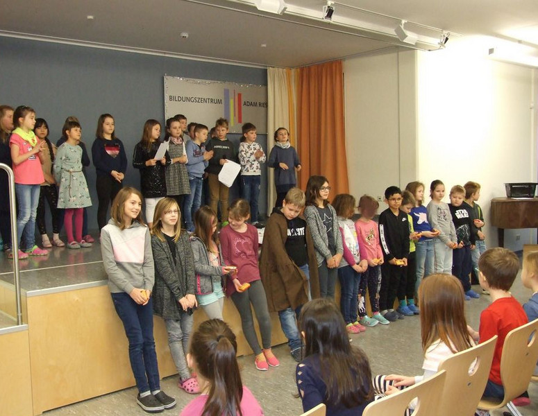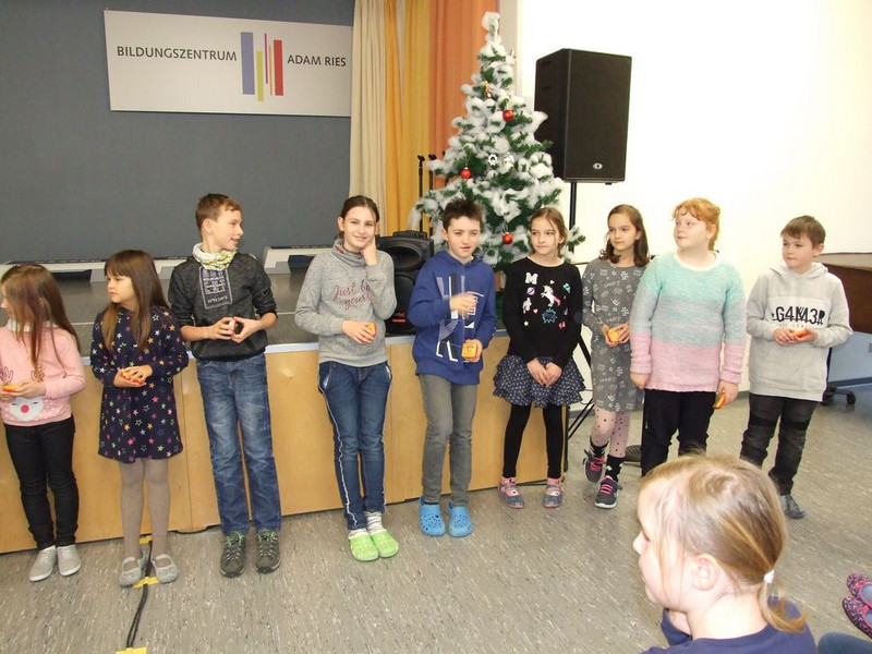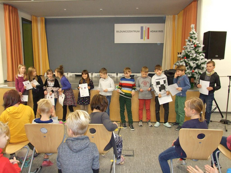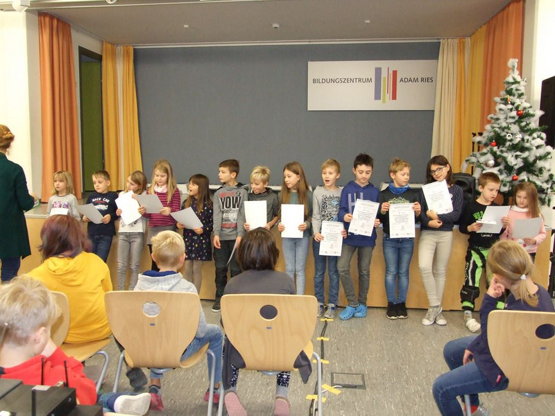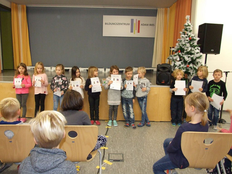 Am 12. Dezember war es wieder soweit, das Programm des Bildungszentrums Adam Ries fand vor so vielen Gästen statt, dass die Plätze in der Aula der Schule nicht ausreichend waren. Gemeinsam wurde Eltern, Kindern, Lehrern, Gta - Leitern, Omas und Opas ein abwechslungsreiches Programm geboten, bei dem Große und Kleine zusammen für vorweihnachtliche Stimmung sorgten. Außerdem gab es vorher Glühwein und Kuchen sowie Speckfettbrote als kulinarische Köstlichkeiten. Es war ein sehr schönes Programm, welches nur durch viele fleißige und engagierte Lehrer stattfinden konnte. Dafür ein großes Dankeschön.