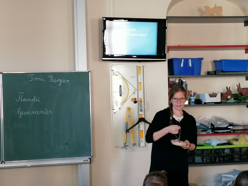 An unserer Schule haben wir öfters Schüler und Studenten, die ihr Praktikum hier absolvieren. Aber dieses Mal war es schon eine ganz besondere Praktikantin, Christa R. aus Paraguay. 3 Wochen lang schnupperte sie bei uns in den deutschen Grundschullalltag hinein, hielt selbst schon Unterrichtsstunden und stellte in allen Klassen ihr Land im Ethikunterricht vor.