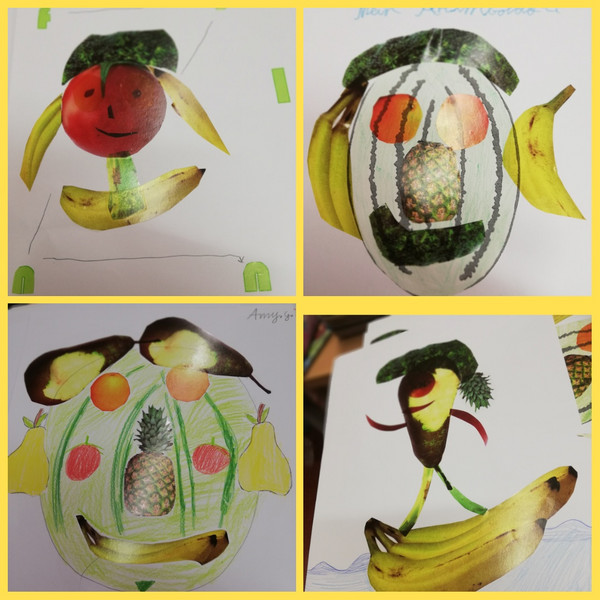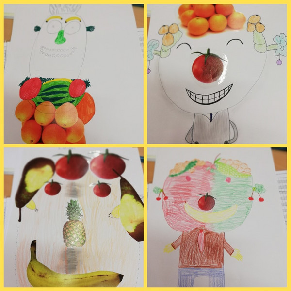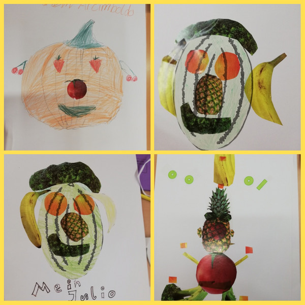 Als begleitende pädagogische Maßnahme gestalteten die Viertklässler ganz nach dem Vorbild von Giuseppe Arcimboldo im Unterricht Obst- und Gemüsegesichter.