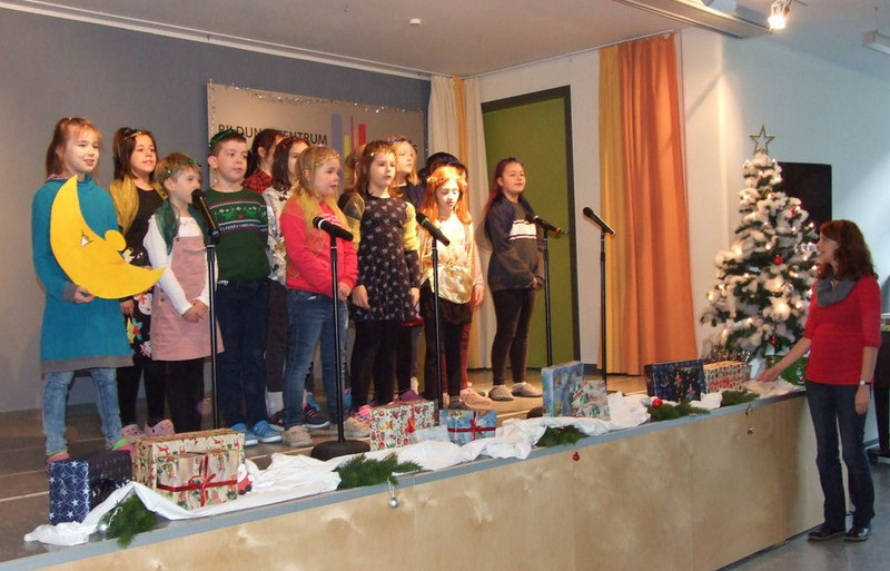 Mit viel Eifer und Neugier sangen die Kinder chinesische Weihnachtslieder, tanzten serbische und schottische Tänze, bastelten Weihnachtsschmuck und erlernten Rhythmen auf afrikanischen Trommeln.