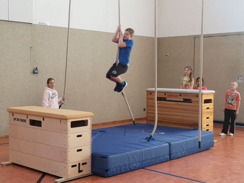 Im Sportunterricht verwandelte sich unsere Turnhalle in dieser Woche in eine große Bewegungslandschaft. Geschicklichkeit, Mut, Ausdauer und soziales Miteinander waren wieder beim Abenteuerturnen gefragt. Außerdem lernten die Kinder dabei ihr Leistungsvermögen genauer einzuschätzen, Rücksicht auf Mitschüler zu nehmen und eigene Grenzen zu überwinden. Und die Freude und der Spaß an der Bewegung kamen natürlich auch nicht zu kurz.