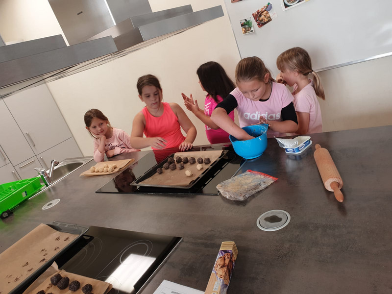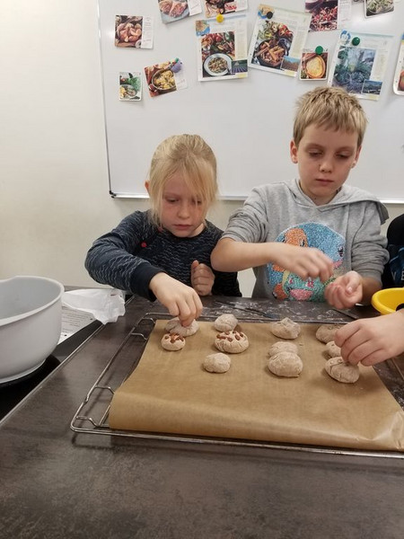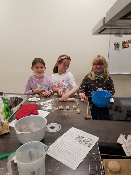 Die Klasse 3a backte im Rahmen des Themas „Getreide“ mit ihrer Klassenlehrerin Frau Lehmann und der Praktikantin Frau Distelmeier Vollkornbrötchen. Dafür bereiteten die Kinder in Kleingruppen den Teig, bestehend aus Dinkelvollkornmehl, Wasser, Hefe und Salz, vor. Danach formten sie die Brötchen und dekorierten sie individuell mit verschiedensten Körnern und Samen, die dankenswerter Weise vom Bäckereibetrieb Annaberger Backwaren gesponsert wurden.