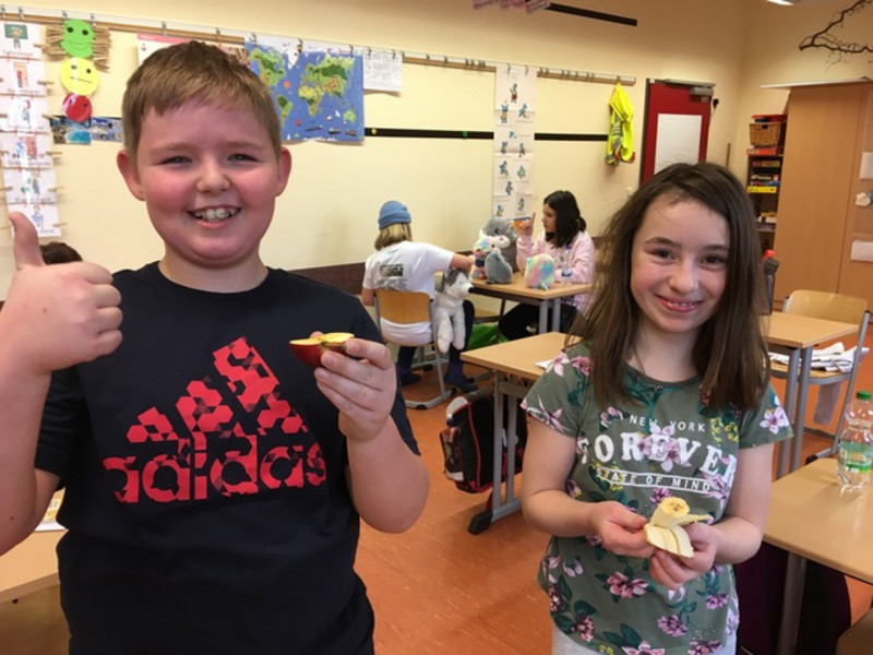 Unsere Schule nimmt weiterhin am EU-Schulprogramm teil, wobei wir jede Woche Freitag frisches, unverarbeitetes Obst und Gemüse von einem Biobauernhof bekommen. Die Kinder und wir Lehrer sind sehr froh, dass wir trotz Corona unter Beachtung aller wichtigen Hygiene-Regeln wieder Vitamine naschen können.