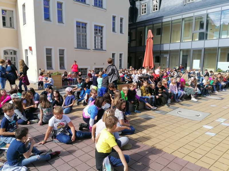 Unser erster Aulatreff im neuen Schuljahr und nach längerer Pause durch Corona fand am 11.09.2020 statt. Gleich zu Beginn stellten sich die neue Schulverwaltungsassistentin Frau Römer, unser neuer Musiklehrer Herr Tomory, die neue Klassenlehrerin der 3b, Frau Lehmann und unsere Praktikantinnen, Frau Mischke und Frau Distelmeier vor. Danach verabschiedeten wir Frau Hänel, welche uns über ein Jahr als Lehrerin unterstützte.