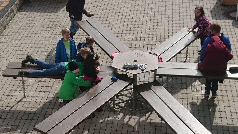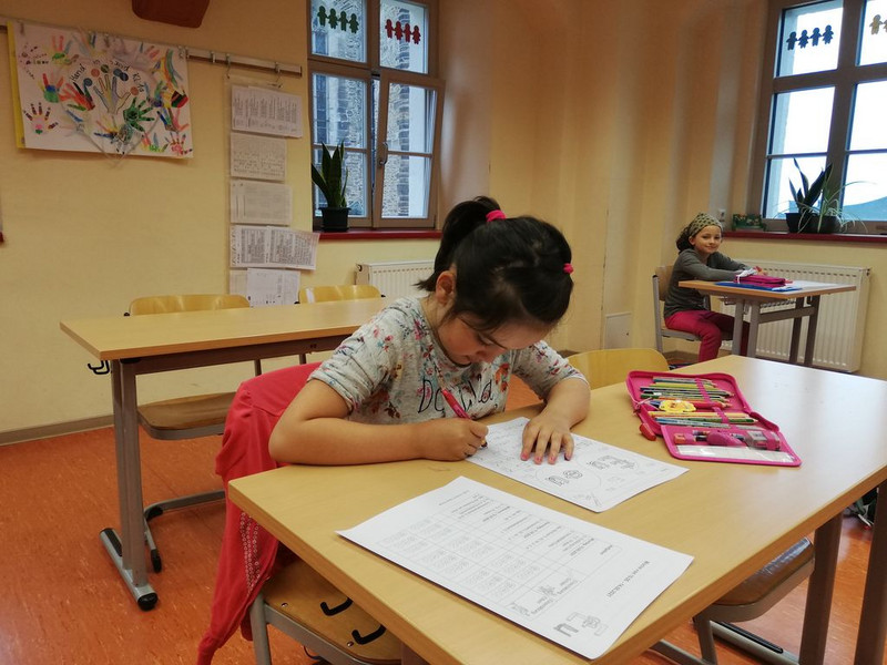 Nachdem die Hände gewaschen waren und das Organisatorische geklärt war, wurde 45 Minuten intensiv an den Aufgaben gearbeitet. Anschließend ging es zum Frühstück und auf den Schulhof.