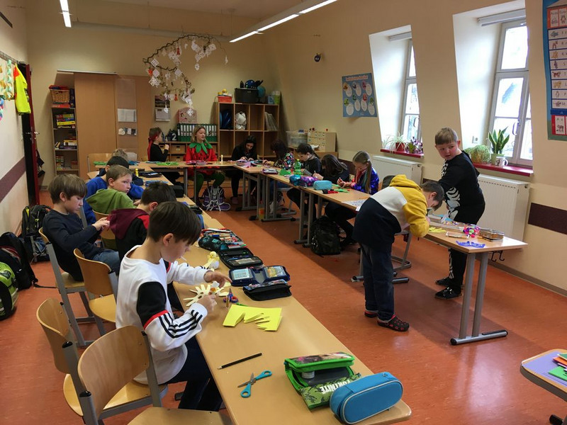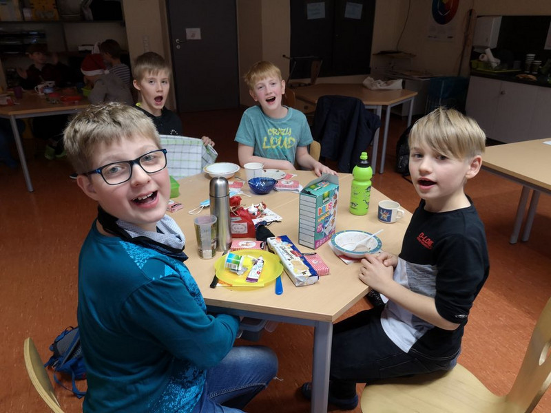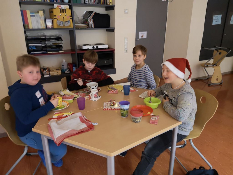Am 19. Dezember, dem eigentlich letzten Schultag vor Weihnachten, konnten wir zwölf Kinder in der Notbetreuung begrüßen. Nachdem die Schülerinnen und Schüler wieder sehr fleißig an ihren Aufgaben gearbeitet haben, wurde gemeinsam gefrühstückt, gebastelt und gespielt. Auch ein weihnachtliches Hörspiel durfte natürlich kurz vor Weihnachten nicht fehlen. Vor dem Mittagessen blieb dann noch genügend Zeit, um sich auf dem Schulhof so richtig auszutoben. Nachdem das Zimmer aufgeräumt war, verabschiedeten wir die Schülerinnen und Schüler in den Hort und ebenso in die wohlverdienten Weihnachtsferien.