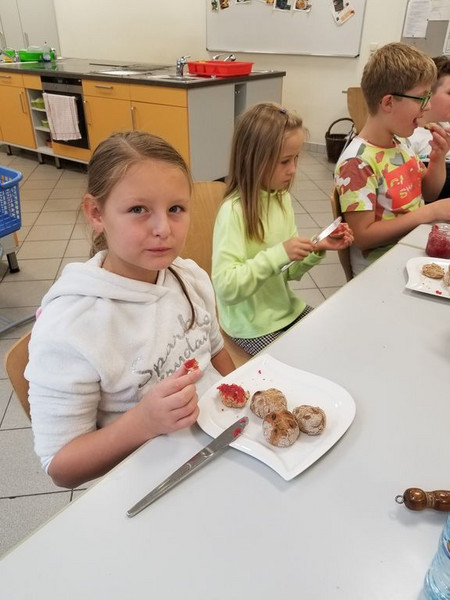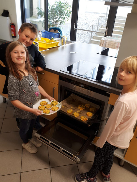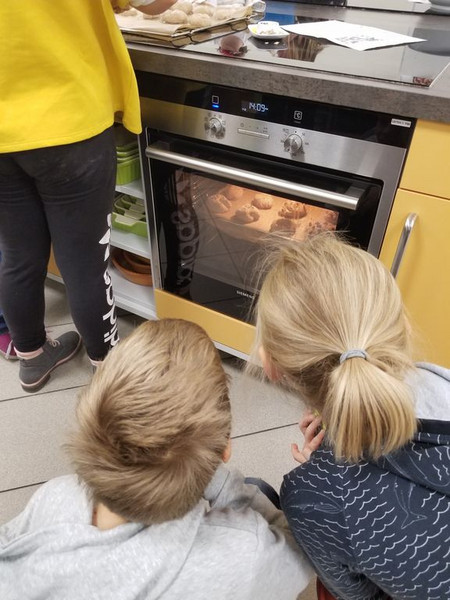 Nach entsprechender Zeit im Backofen ließen sich alle Beteiligten die Brötchen schmecken. Am übriggebliebenen Backwerk durften sich dann zu Hause die Familien der Schülerinnen und Schüler laben.