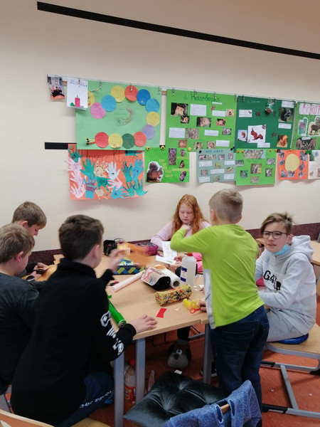 Im 2. Teil des Vormittags gab es verschiedene Bastelangebote und ein kleines bisschen Kino mit Popcorn und den "Wichteln". Zum Abschluss wurde noch fleißig in der Lernwerkstatt gearbeitet.