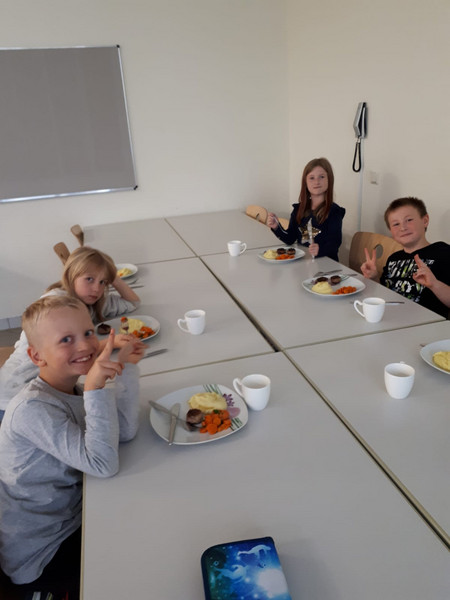 Als dann das Zimmer wieder ordentlich aufgeräumt war, folgte der 2. Teil mit Mittagessen und Betreuung im Hort.