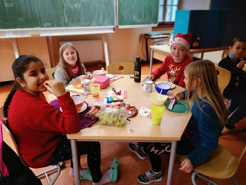 Bei einem gemütlichen Weihnachtsfrühstück, bei Geschichten und Liedern, Basteleien und Spielen verbrachten die Schüler der 3b eine fröhliche Weihnachsfeier in der letzten Schulwoche. Am Ende gab es für jedes Kind noch ein Wichtelgeschenk und es wurde das selbst hergestellte Schattentheater auf DVD angeschaut.