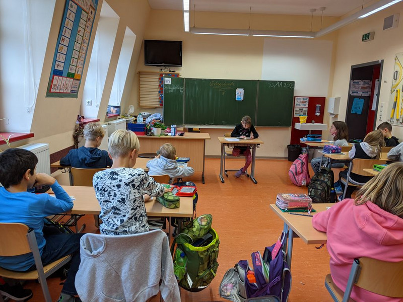 Unsere „Abschlussklassen“ dürfen im Wechselunterricht die Schule besuchen. Die Kinder gehen mit viel Motivation an den ungewöhnlichen Unterricht heran. Obwohl sie froh sind, endlich wieder vor Ort lernen zu können, vermissen sie den Rest der Klasse. Das Lernen in kleinen Gruppen birgt Vor- und auch Nachteile. Einerseits kann sich der Lehrer gezielter um einzelne Kinder kümmern, auf der anderen Seite wird die doppelte Zeit benötigt, da jede Gruppe den Stoff einzeln erklärt bekommen muss und die Homeschoolingwoche lediglich für Übungszwecke genutzt werden kann.