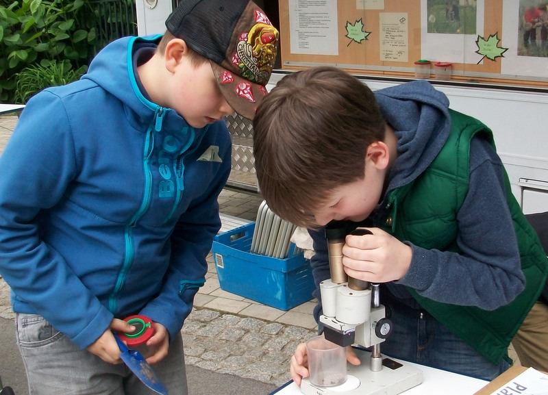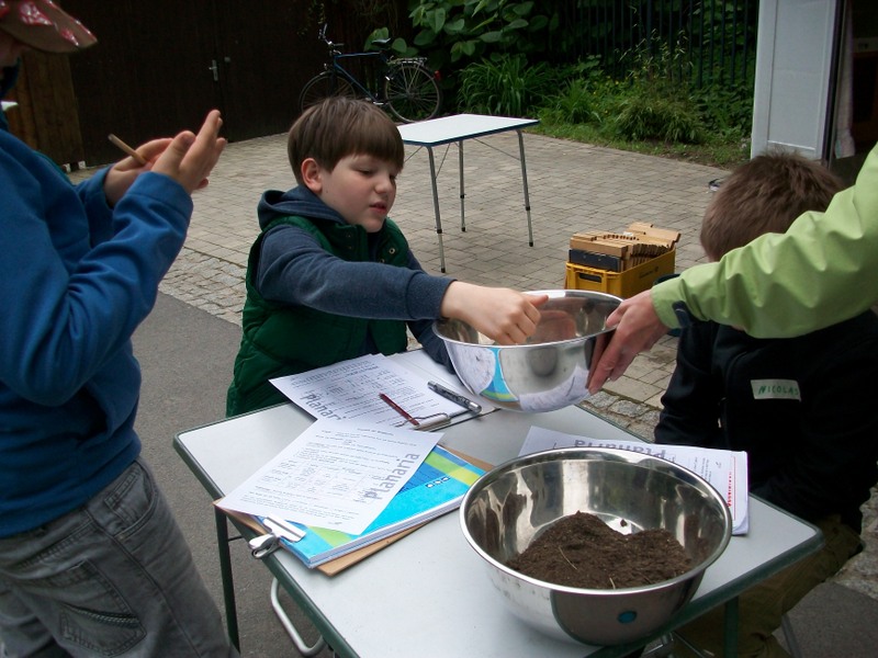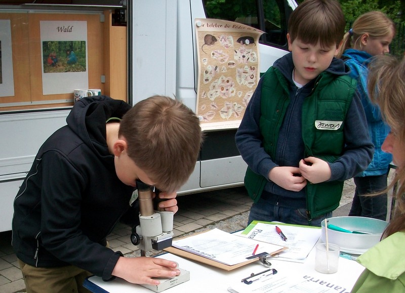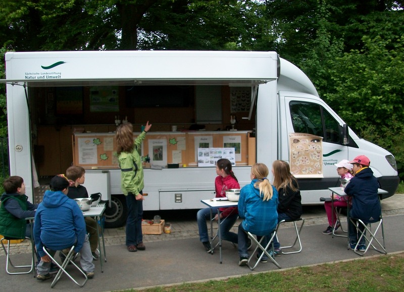 Ende Mai 2013 erlebten Schüler der Klassen 4 den Sachunterricht im grünen Klassenzimmer, denn das Umweltmobil der Sächsischen Landesstiftung Natur und Umwelt kam an unsere Schule. Mit Becherlupe und Schaufel nahmen die Schüler Bodenproben, sammelten Tiere und Pflanzen und untersuchten diese unter dem Mikroskop. Dabei konnte man so einiges entdecken und neues lernen.