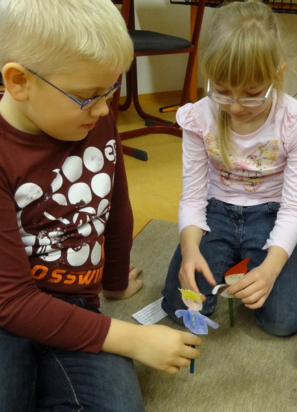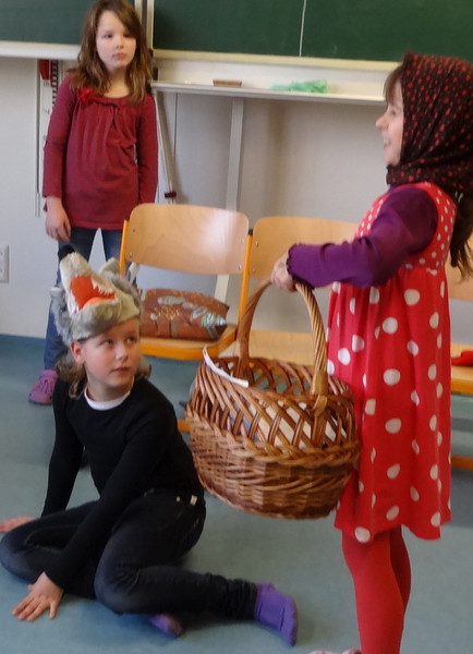 Bei diesem einwöchigen Projekt hatten die Kinder die Möglichkeit, Märchen der Gebrüder Grimm unter verschiedensten Aspekten zu betrachten und mit allen Sinnen zu erleben. Sie näherten sich den bereits bekannten Märchen künstlerisch an, stellten Figuren und Szenen nach, spielten Theater, lösten Märchenrechenaufgaben und vieles andere mehr.