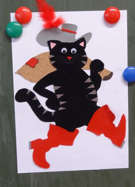 Nun waren die Kinder mit der Symboldarstellung eines Märchens vertraut und erfanden eigene Bilderwelten für weitere bekannte Märchen. Auf diese Weise gestalteten sie Ausschnitte aus den Märchen „Allerleirauh“, „Der Fischer und seine Frau“, „Hase und Igel“, „Der gestiefelte Kater“ oder „Rapunzel“ und hatten wieder viele Anlässe, sich gegenseitig Märchen in der vorweihnachtlichen Zeit zu erzählen.