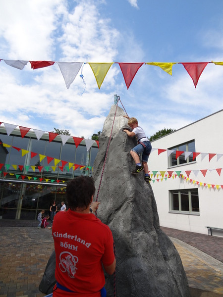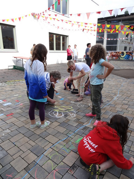 Zum Sommerfest schauten neben den Familien der Grundschüler auch einige Familien der neuen ersten Klasse vorbei. Die Kinder spielten miteinander, Eltern kamen mit anderen Eltern, Erziehern und Lehrern ins Gespräch. Zudem konnte man sich zahlreiche Ergebnisse aus dem Unterricht oder aus den Ganztagsangeboten in kleinen Ausstellungen ansehen. Das Highlight des Tages war für die Kinder jedoch der riesige Kletterberg auf dem Schulhof, der durch den Kinderland e.V. betreut wurde. Aber auch das Kinderschminken und die Spielmöglichkeiten des Spielmobils vom Schlupfwinkel e.V. fanden großen Anklang. Den krönenden Abschluss bildete das Theaterstück, welches die Kinder in der Theater AG einstudiert hatten. Allen Helfern und Unterstützern des Sommerfestes sei an dieser Stelle noch einmal herzlich Danke gesagt für ihr großes Engagement.