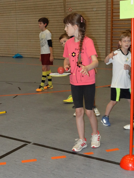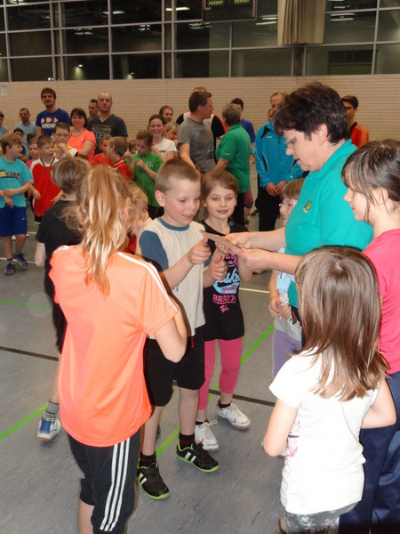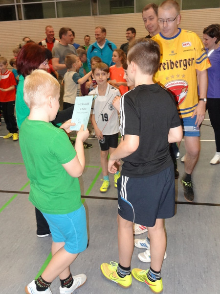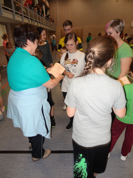 Am 16.01.2015 hieß es bei uns wieder „Fit ins neue Jahr“. Hochmotiviert und begeistert beteiligten sich Schüler mit ihren Familien, gemeinsam mit Lehrern und Horterziehern an sportlichen Wettkämpfen. Um 16.00 Uhr war die Turnhalle mit über 150 Kindern, Eltern, Geschwistern sowie Großeltern gefüllt. Als Erwärmung führten einige Mädchen der Klasse 4b gymnastische Übungen zur Popgymnastik durch. Dann folgten zwei Durchgänge mit jeweils zehn Staffelrunden. Dabei kämpften Einzelne oder ganze Familien hart um jeden Punkt. Mit Schnelligkeit, Ausdauer und Geschicklichkeit gab jeder sein Bestes, angefeuert auch durch die zahlreichen Zuschauer. Beim Auszählen der Punkte wurde es sehr eng, doch den Erstplatzierten war der Sieg nicht zu nehmen. Im zweiten Durchgang gab es sogar zwei 1.Plätze. Freudestrahlend nahmen alle Gewinner ihre Siegerurkunden entgegen. Im Anschluss konnten alle Beteiligten auf Klassenstufenbasis beim Abwurfball Eltern gegen Kinder ihr Können unter Beweis stellen.Als nach 120 Minuten der Schlusspfiff ertönte, waren alle begeistert von dem aktiven und erfolgreichen Nachmittag.Auch im nächsten Jahr wird eine Veranstaltung mit diesem Motto folgen.