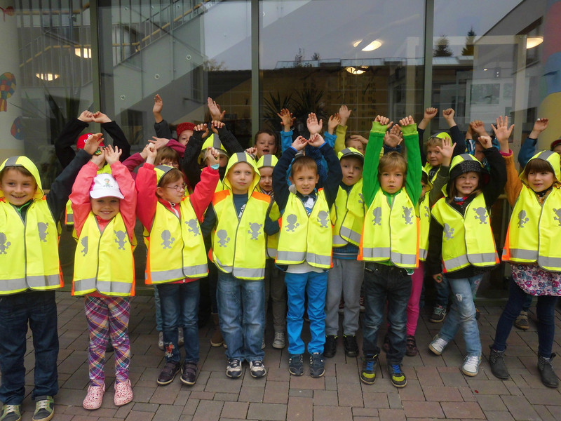 An Dankeschön von der Klasse 1 an den ADAC für die Sicherheitswesten!